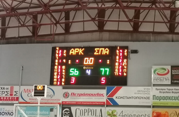 Καλύτερος ο Σπαρτιατικός στη περισσότερη διάρκεια του αγώνα επικράτησε στην Τρίπολη του Αρκαδικού με 56-77(31-41). Από τους γηπεδούχους ξεχώρισε ο Κουρόγιωργας και τους φιλοξενούμενους οι Αγγουράς, Σταθάκος και Κάτσαρης.