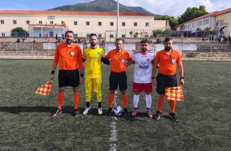 Γήπεδο Βαλύρας : Θύελλα Μερόπης – Παναθηναϊκός Καλαμάτας > ΓΕΩΡΓΑΝΤΑΣ Χ., ΚΥΡΙΑΚΟΠΟΥΛΟΣ Ν., ΓΙΑΝΝΟΥΛΑΚΗΣ Θ.