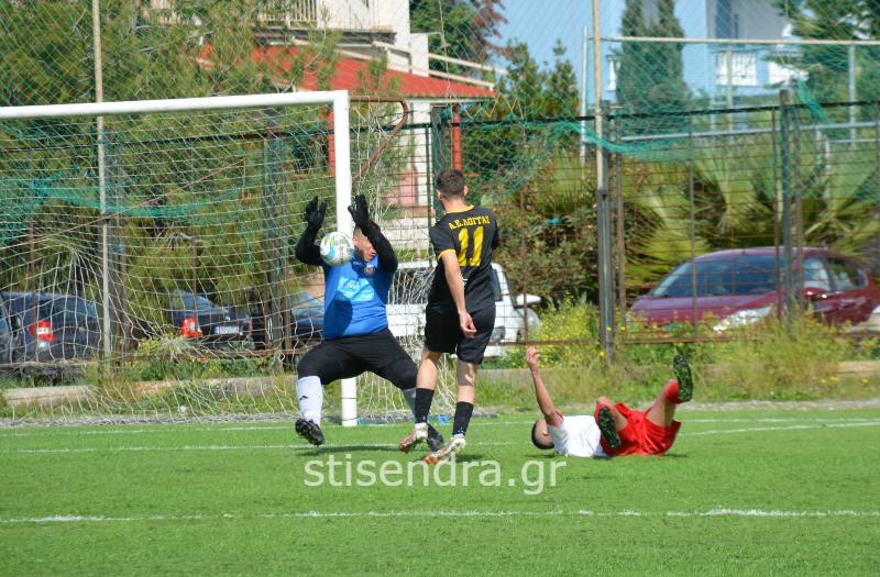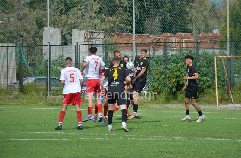 Οι γηπεδούχοι κοίταξαν στα μάτια τους πρωτοπόρους και τους αιφνιδίασαν πολύ νωρίς όταν στο 5′ ο Μάρκος βρέθηκε σε θέση βολής και με ψύχραιμο σουτ έστειλε την μπάλα στα δίχτυα του Αργυρόπουλου.
