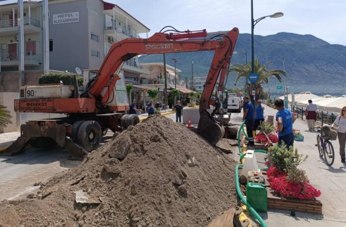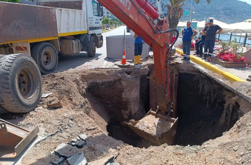 Εργασίες εξελίσσονται από συνεργασία της ΔΕΥΑ Καλαμάτας και του Δήμου προκειμένου να αποκατασταθεί η βλάβη σε σημείο του αγωγού ακαθάρτων, που εμφανίστηκε το απόγευμα της Πέμπτης 22 Μαΐου 2025 και είχε ως αποτέλεσμα να προκληθεί καθίζηση επί του οδοστρώματος στην οδό Ναυαρίνου.