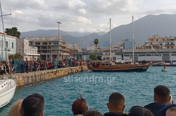 Μετά το πέρας της Θείας Λειτουργίας στον Ιερό Ναό Αναλήψεως του Χριστού, στις 11.00 το πρωί, εκκίνησε η θρησκευτική πομπή, καταλήγοντας στον χώρο έμπροσθεν του Κεντρικού Λιμεναρχείου Καλαμάτας.