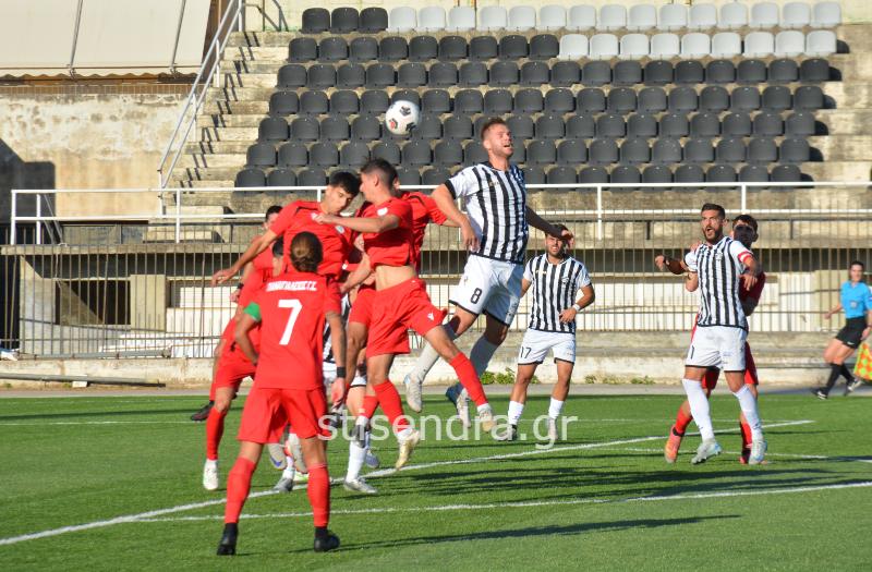Στο 3′ ο Σιάκας έπιασε την κεφαλιά από σέντρα του Φωκαΐδη για να αποκρούσει από δύσκολη γωνία ο Παγκράτης.