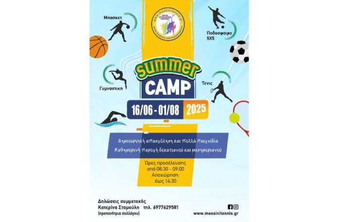 Ένα αρκετά ενδιαφέρον καλοκαιρινό camp θα πραγματοποιηθεί στην Μπούκα Μεσσήνης από τις 16 Ιουνίου έως και 1η Αυγούστου γεμάτο με δράση από διάφορα Αθλήματα όπως ποδόσφαιρο, Μπάσκετ, γυμναστική και τένις. Την διοργάνωση επιμελείται η κυρία Σταμούλη Κατερίνα προπονήτρια τένις Ομίλου Αντισφαίρισης Μεσσήνης.