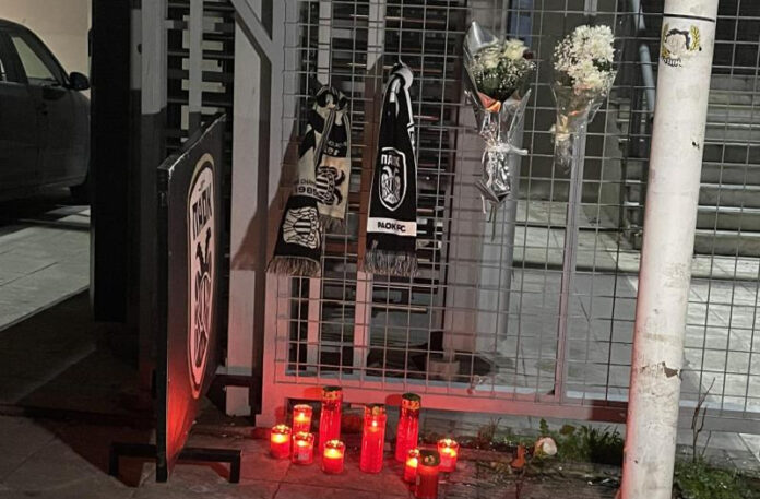 Στο γήπεδο της Τούμπας, βρέθηκαν φίλοι του ΠΑΟΚ για να αφήσουν λουλούδια και κασκόλ, ως ελάχιστο φόρο τιμής στους νεκρούς φίλους του «Δικεφάλου».