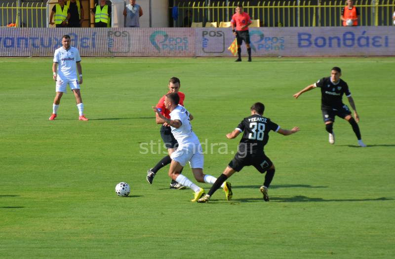 Στο 9′ η ομάδα του Αλέκου Βοσνιάδη απείλησε την εστία της Λάρισας , αλλά το σουτ του Μορέιρα έφυγε άουτ. Δυο λεπτά αργότερα η ΑΕΛ με την σειρά της έβγαλε αντίδραση και απείλησε και εκείνη με αδύναμη κεφαλιά του Τούπτα. Το παιχνίδι σε εκείνο το χρονικό σημείο είχε πολύ καλό ρυθμό και στο 15′ οι γηπεδούχοι έχασαν τεράστια ευκαιρία για το 1-0, με τον Τσορνομάζ να αστοχεί από πλεονεκτική θέση. Η Καλαμάτα συνέχισε να ελέγχει τον αγώνα και στο 29′ έφτασε μια… ανάσα από το γκολ, αλλά ο Παμλίδης δεν βρήκε δίχτυα μέσα από την περιοχή της ΑΕΛ. Τέσσερα λεπτά αργότερα όμως ο ίδιος ποδοσφαιριστής μετά από ωραίο συνδυασμό των Σπυράκου- Μπονέτο κατάφερε από το ύψος της μικρής περιοχής να γράψει μέσα σε έντονους πανηγυρισμούς συμπαικτών και φιλάθλων το 1-0 για την Καλαμάτα .