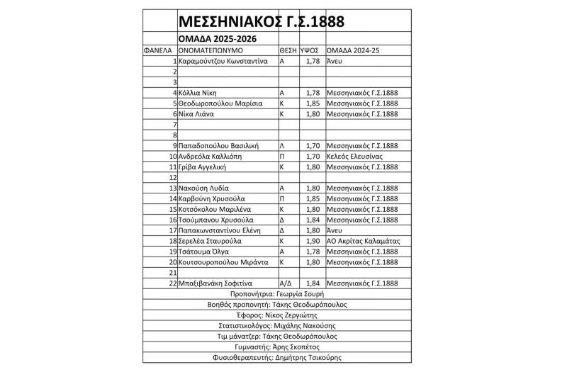 Συνεχίζεται η προετοιμασία της ομάδας Γυναικών του Μεσσηνιακού η οποία φέτος θα αγωνιστεί στην Α2′ Εθνική, έχοντας την εμπειρία από την προηγούμενη παρουσία της τα χρόνια 2014-2000, αλλά έχοντας στο φετινό δυναμικό του αθλήτριες με εμπειρία στην Α2 αλλά και σε μεγαλύτερες κατηγορίες.