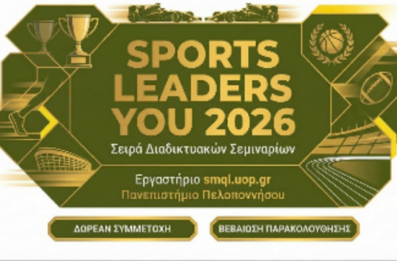 Διαδικτυακά σεμινάρια- SPORTS LEADERS YOU 2026- θα πραγματοποιηθούν από το Εργαστήριο Οργάνωσης, Διοίκησης Υπηρεσιών και Ποιότητας Ζωής του Τμήματος Οργάνωσης και Διαχείρισης Αθλητισμού του Πανεπιστημίου Πελοποννήσου.