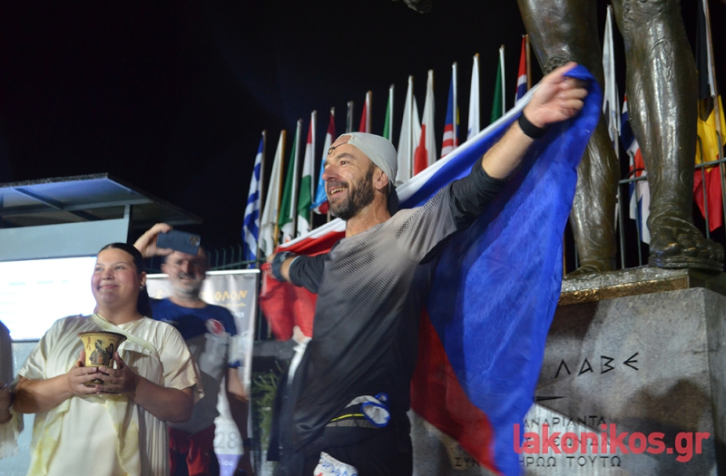 Συγκλονιστική στιγμή για τον υπεραθλητισμό και το «Σπάρταθλον», καθώς ο Radek Brunner από την Τσεχία, σε ηλικία 51 ετών, κατέκτησε τη νίκη στη φετινή, 43η διοργάνωση. Ο δρομέας διένυσε τα 246 απαιτητικά χιλιόμετρα από την Αθήνα έως τη Σπάρτη σε χρόνο 21:24:35, τερματίζοντας πρώτος μπροστά στο άγαλμα του βασιλιά Λεωνίδα, υπό βροχή και τις επευφημίες των συγκεντρωμένων πολιτών. Ο χρόνος του αποτελεί την 7η καλύτερη απόδοση στην ιστορία του θεσμού.Ο Radek Brunner, κατά τον τερματισμό του αναφώνησε «επιτέλους!», καθώς αρκετές φορές είχε βρεθεί τα προηγούμενα χρόνια στο βάθρο των νικητών, ποτέ όμως στο πρώτο σκαλί.
