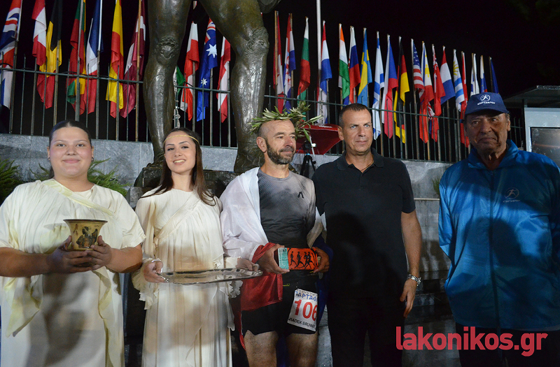 Συγκλονιστική στιγμή για τον υπεραθλητισμό και το «Σπάρταθλον», καθώς ο Radek Brunner από την Τσεχία, σε ηλικία 51 ετών, κατέκτησε τη νίκη στη φετινή, 43η διοργάνωση. Ο δρομέας διένυσε τα 246 απαιτητικά χιλιόμετρα από την Αθήνα έως τη Σπάρτη σε χρόνο 21:24:35, τερματίζοντας πρώτος μπροστά στο άγαλμα του βασιλιά Λεωνίδα, υπό βροχή και τις επευφημίες των συγκεντρωμένων πολιτών. Ο χρόνος του αποτελεί την 7η καλύτερη απόδοση στην ιστορία του θεσμού.Ο Radek Brunner, κατά τον τερματισμό του αναφώνησε «επιτέλους!», καθώς αρκετές φορές είχε βρεθεί τα προηγούμενα χρόνια στο βάθρο των νικητών, ποτέ όμως στο πρώτο σκαλί.