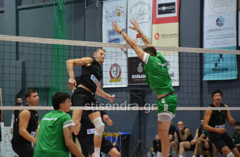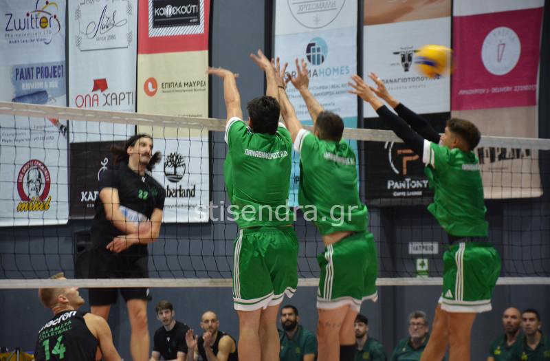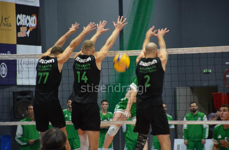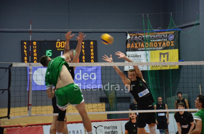 Οι τυπικά φιλοξενούμενοι παρά την αξιόλογη προσπάθεια της Καλαματιανής ομάδας επικράτησαν με σχετική άνεση τα δύο πρώτα σετ με 19-25 και 12-25 αντίστοιχα. Στο τρίτο σετ οι παίκτες του Χατζηαντωνίου ανέβασαν την απόδοση τους αλλά τελικά ο Παναθηναϊκός κατάφερε να το κατακτήσει και αυτό με 22-25.