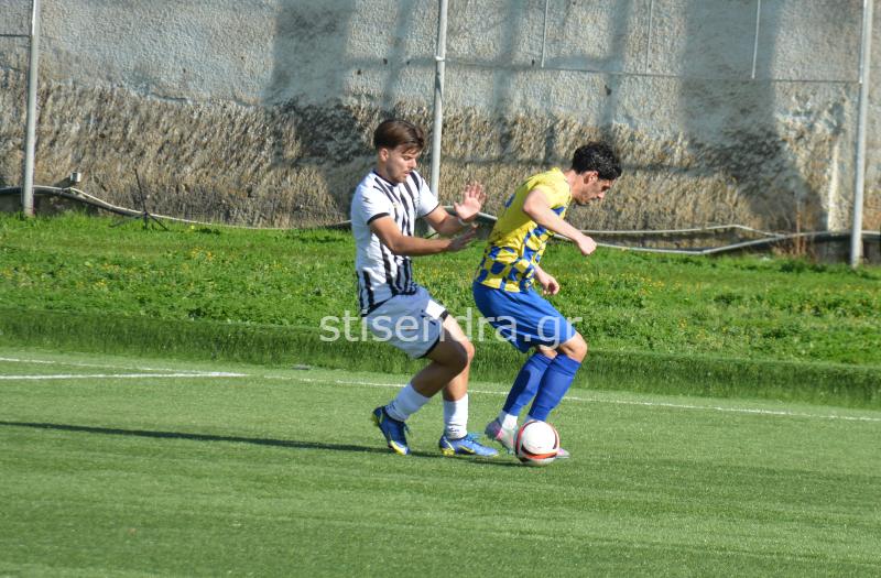 Οι δύο ομάδες είχαν από ένα ημίχρονο με τον Πανθουριακό να έχει τα ηνία του αγώνα στο πρώτο μέρος του παιχνιδιού και κατάφερε να βρει το δρόμο προς τα δίχτυα δύο φορές με τον φορμαρισμένο τις τελευταίες αγωνιστικές Σταύρο Αγγελή, που πέτυχε και τα δύο γκολ των γηπεδούχων στο 13′ με εκτέλεση πέναλτι που κέρδισε ο ίδιος σε χέρι του Στασινόπουλου και στο 35′ με προβολή στο πρώτο δοκάρι πρόλαβε την άμυνα του Μιλτιάδη σε σέντρα από δεξιά του Θεοδοσιάδη. Ο Μιλτιάδης είχε στο διάστημα αυτό δύο πολύ καλές ευκαιρίες με τον Παπαδόπουλο στο 17′ να μη μπορεί να νικήσει τον Τόσκα αφού το σουτ που έκανε απόκρουσε ο τερματοφύλακας της Θουρίας και στο 22′ όταν ο Τσιάτσιος έπιασε πολύ δυνατό από το ύψος του πέναλτι με τη μπάλα όμως να γλείφει το αριστερό δοκάρι του Τόσκα και να καταλήγει άουτ.