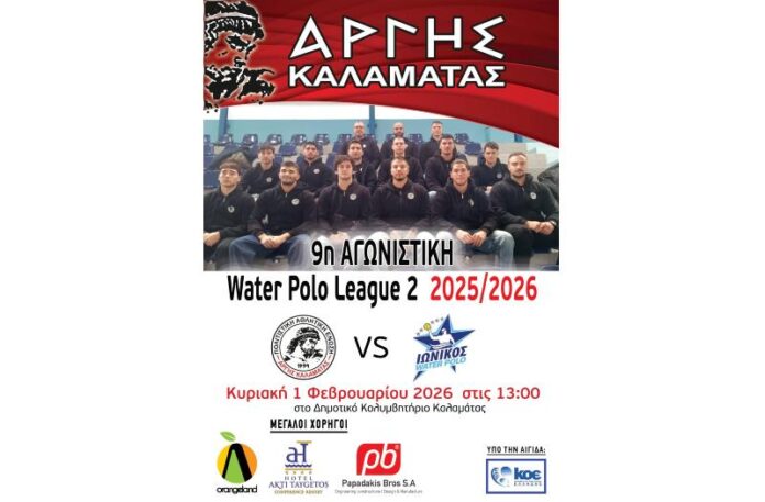 Το ταξίδι συνεχίζεται για τον Άργη Καλαμάτας… Στο σημαντικότερο (από βαθμολογικής σημασίας) αγώνα της χρονιάς η καλαματιανή ομάδα θα αντιμετωπίσει την ομάδα του Α.Ο. Ιωνικού Νικαίας την Κυριακή 1 Φεβρουαρίου 2026 στις 13:00 στο Δημοτικό κολυμβητήριο της Καλαμάτας.