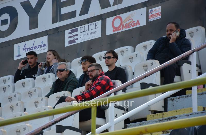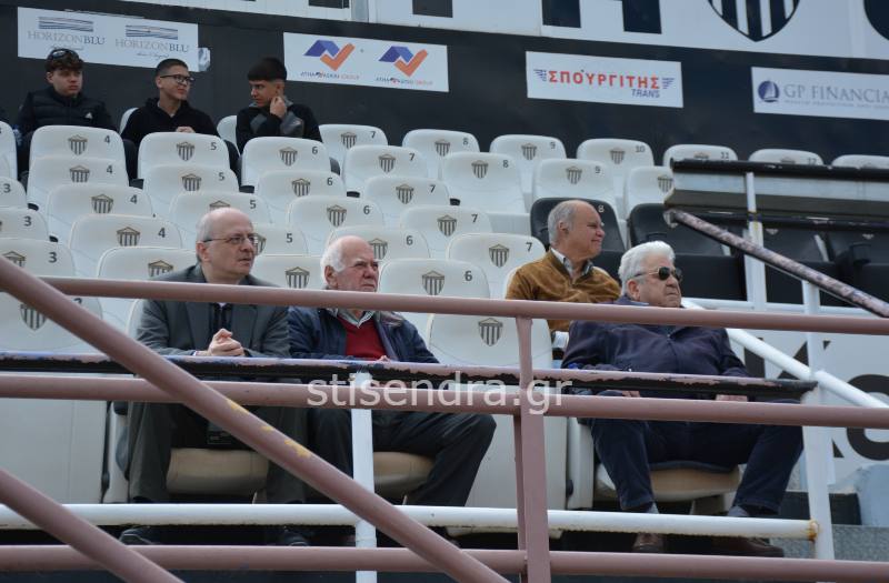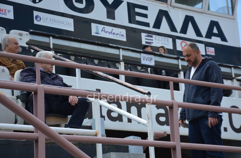 To παρόν από ότι διακρίναμε στο γήπεδο έδωσαν, ο Άγγελος Σκαφιδάς, ο αντιδήμαρχος Γιώργος Φάβας, οι αντιπρόεδροι της ΠΑΕ κύριοι Ράλλης και Βεργής οι οποίοι έδωσαν το μήνυμα και το σύνθημα για νίκη και άνοδο μετά από 25 χρόνια. Όσο αφορά τις εργασίες αναβάθμισης του σταδίου για να μπορεί να δοθεί άδεια για αγώνες στην Super League 1 ο Αντιδήμαρχος Γιώργο Φάβας τόνισε ότι έχουν γίνει όλες οι ενέργειες που πρέπει αν ανεβεί η ομάδα από τον Δήμαρχο και τον περιφερειάρχη ώστε η ομάδα να αγωνιστεί στο στάδιο τη νέα σεζόν.