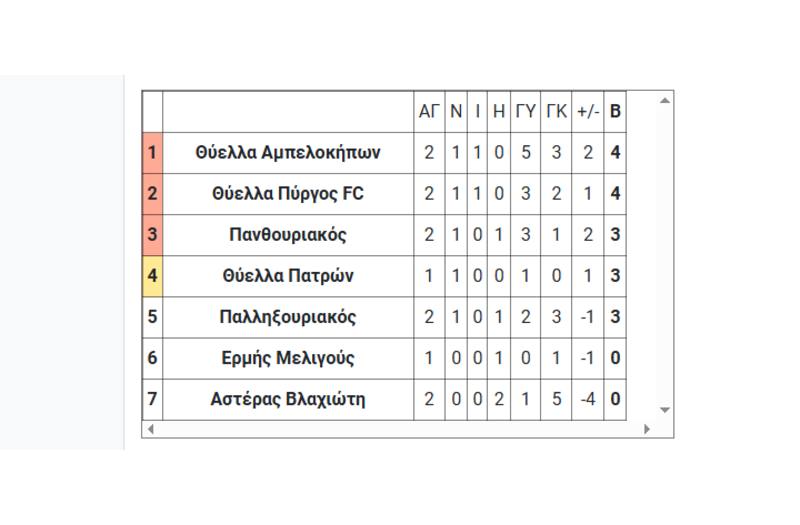 ** Θύελλα Πατρών και Ερμής Μελιγούς έχουν κάνει το ρεπό τους