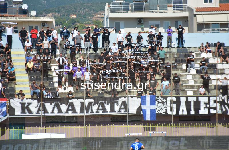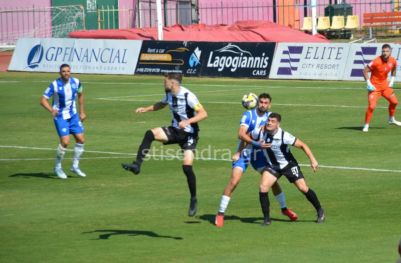 Στο παιχνίδι μας τώρα, η Καλαμάτα ξεκίνησε πολύ δυνατά με πλήρη πρωτοβουλία κινήσεων πιέζοντας την άμυνα των φιλοξενούμενων που το μόνο που μπορούσαν να κάνουν είναι να παίξουν αντιποδόσφαιρο και καθυστερήσεις. Η πρώτη καλή στιγμή ήταν στο 9′ όταν ο πολύ καλός Τσέλιος έπιασε σουτ για να βρει η μπάλα στο οριζόντιο δοκάρι του Κυρίτση.