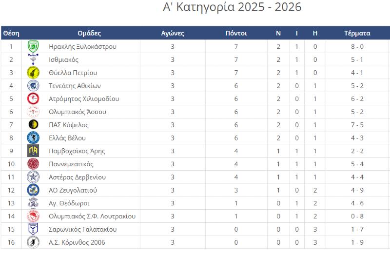 Τα πλήρη αποτελέσματα της 3ης αγωνιστικής στην Α’ Κορινθίας είναι