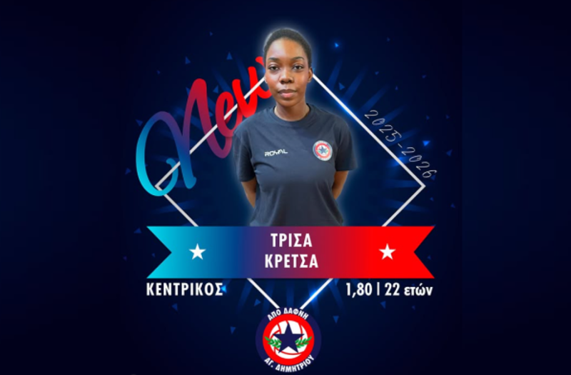 «Ο Α.Π.Ο. Δάφνη Αγίου Δημητρίου ανακοινώνει την έναρξη της συνεργασίας της γυναικείας ομάδας με την αθλήτρια Τρίσα Κρέτσα για την ερχόμενη αγωνιστική περίοδο!Η Τρίσα αγωνίζεται ως κεντρικός. Τα προηγούμενα χρόνια αγωνίστηκε στο Περιστέρι, στον Πανελλήνιο, τον ΠΑΟ Κουκακίου και τον Ιωνικό Νέας Φιλαδέλφειας.Καλωσορίζουμε την Τρίσα και της ευχόμαστε καλή αγωνιστική περίοδο, με υγεία και επιτυχίες!»
