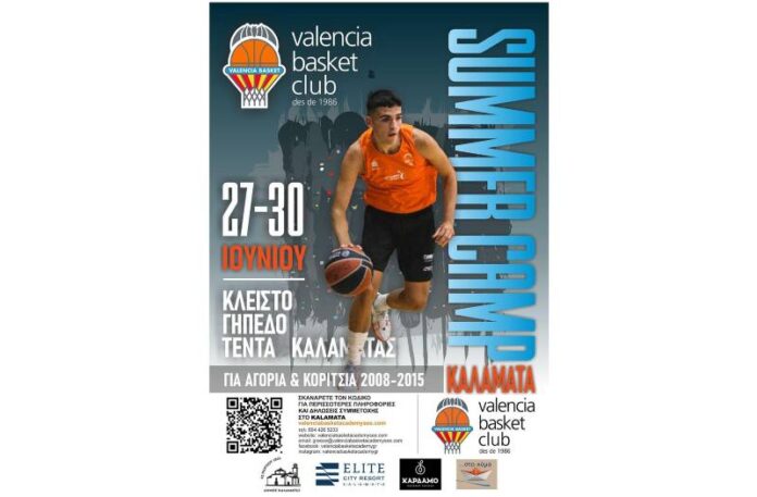 Μια από τις κορυφαίες ομάδες στην Ευρώπη, η Valencia Basket, θα φιλοξενηθεί στην Καλαμάτα στις 27 έως 30 Ιουνίου στο γήπεδο της Τέντας με το περίφημο ”Valencia Basket Club” συνεχίζοντας το πρωτοπόρο της πρόγραμμα παραγωγής νεαρών καλαθοσφαιριστών.