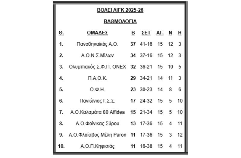Μετά από αγώνα θρίλερ που άρχισε στις 22:30 το βράδυ της Κυριακής (λόγω καθυστερημένης άφιξης του πλοίου μετέφερε τους διαιτητές από τον Πειραιά στην Ερμούπολη λόγω απαγορευτικού απόπλου) και ολοκληρώθηκε στη μία μετά τα μεσάνυχτα της Δευτέρας ο Α.Ο.Καλαμάτα 80 Affidea νίκησε με 3-2 σετ τον Α.Ο.Φοίνικα στο μεγάλο ντέρμπι παραμονής που ολοκλήρωσε την 15η αγωνιστική της Volley League.