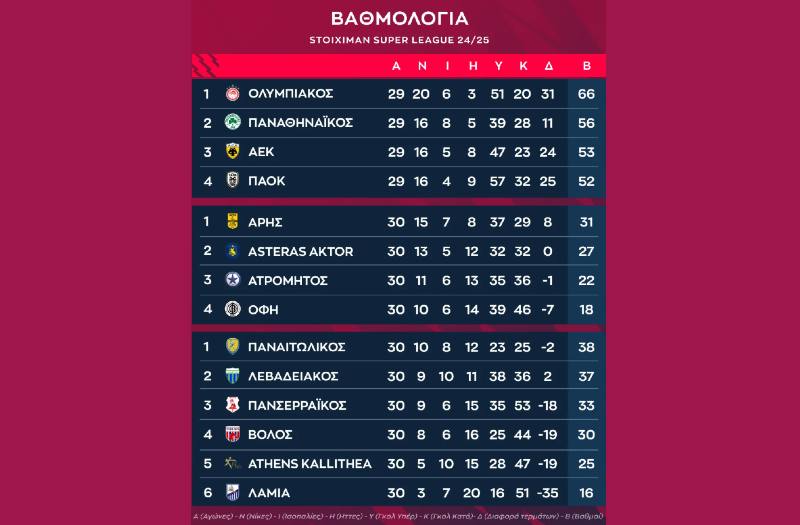 Η βαθμολογία της Stoiximan Super League: